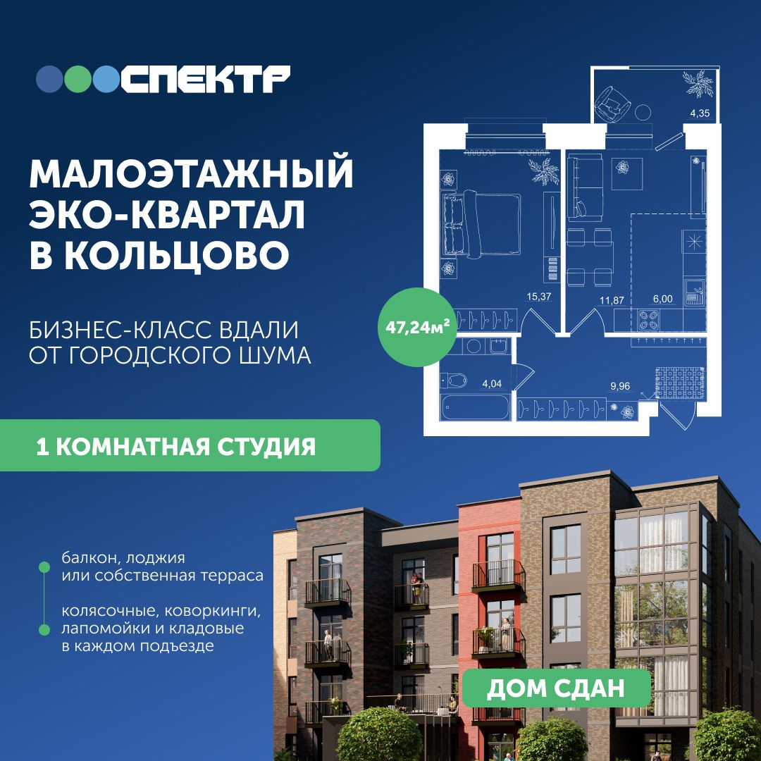 Студия, 47.24 м², №30