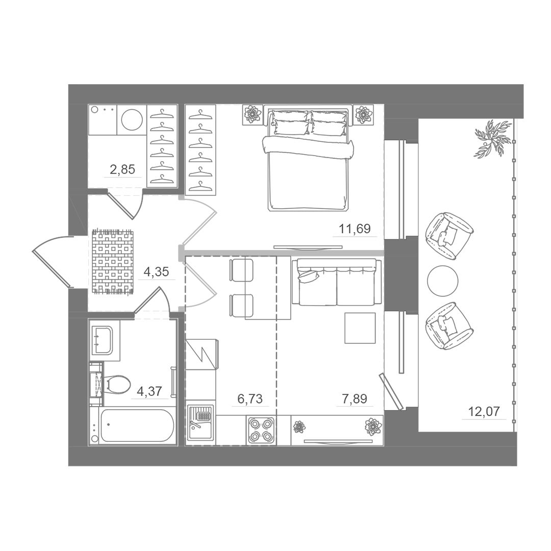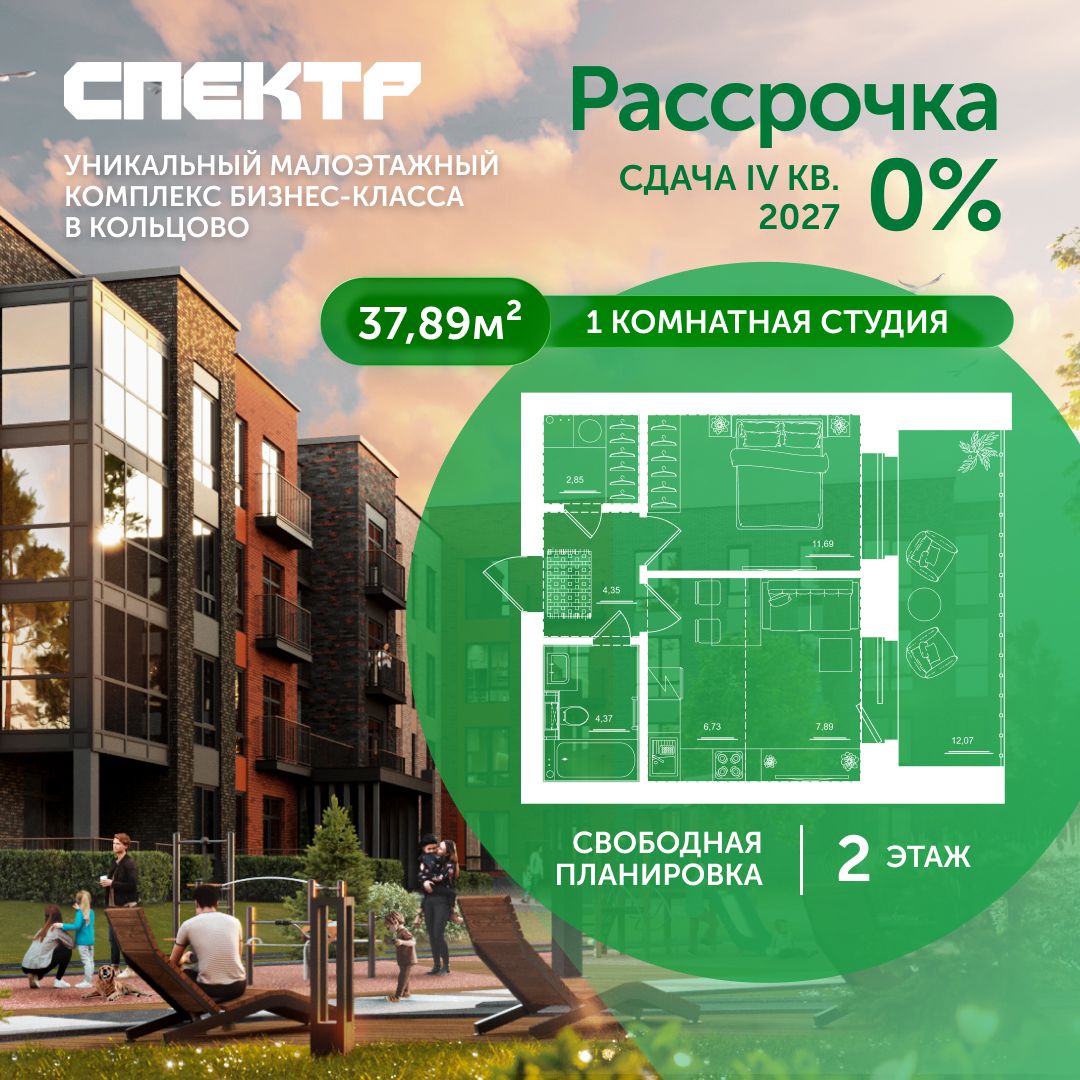 Студия, 37.89 м², №73